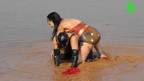A schoolyard question is answered as these two hot heroines go head to head in a muddy battle for supremacy. Enjoy as capes get wet and heavy and the claws come out in a 5-minute 12-second video.