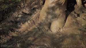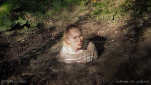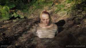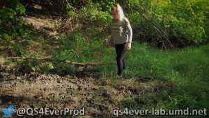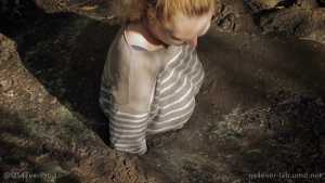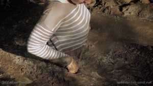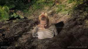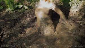 Tiny Soya wanders through the swamp, stepping on thick green grass, until she finds a place where there is a lot of deep natural clay. Then Tiny gets stuck in clay and resists sinking (actually trying to sink as deep as she can). After floundering in this quicksand for quite some time, she sinks up to her chest and then climbs out. Her clothes become completely soiled with mud.