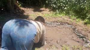 Soon thereafter I start dipping my double D breasts into the mud before completely unveiling them for the camera.