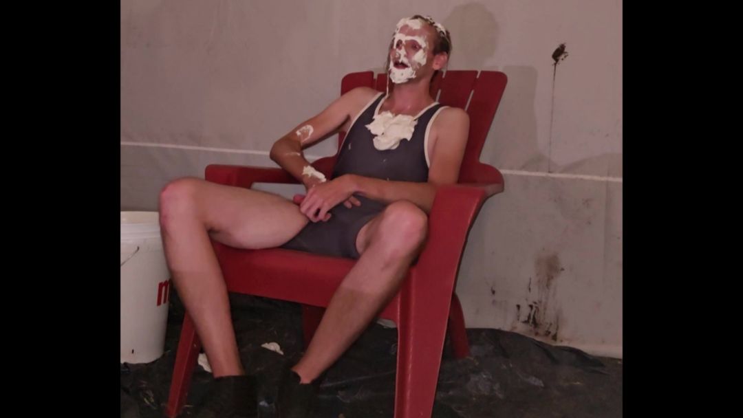 Another recreation of a classic! Here we have Dbolt sporting a tight fitting singlet. He thinks he is there to win a jack-off contest. Little did he realize the game was rigged from the start and there would be... "distractions." To break his concentration, he faces 10 pies and 3 different nasty slimings along the way. Did he ultimately win? Well, depends on how you look at it. Hope you enjoy this thoroughly messy adeventure!