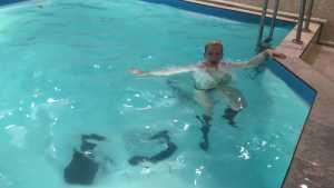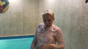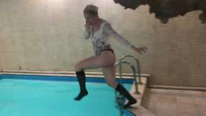 Wetlook in the Pool and Bath! Tight Dress and Pantyhose!