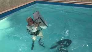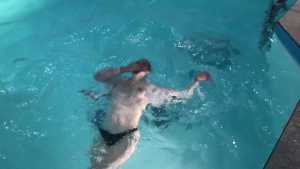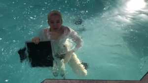 Wetlook and Dive in the Pool with Mask! Sheer Top, No Bra!