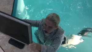 Fell into the Pool While Cleaning the Bathtub! No Lingerie!