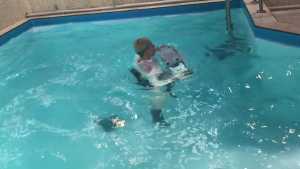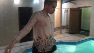 Wetlook in an Inflatable Pool Sheer Top and No Bra!