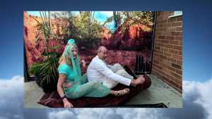 Everyone loves a good Panto... and here's our take on this genie flying on her magic carpet to a secluded Oasis and giving Aladdin his third wish to get Wet with me.