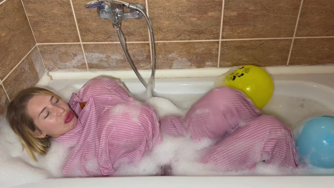 Wetlook in Pink Wedding Dress and Veil with Stockings!
