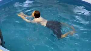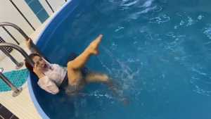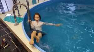 Wetlook in an Inflatable Pool Sheer Top and No Bra!