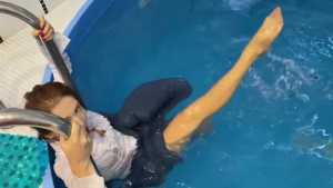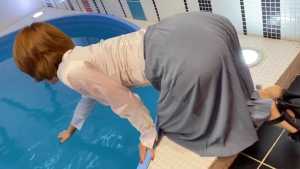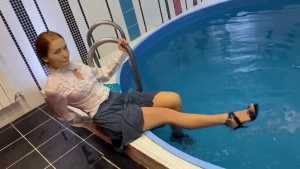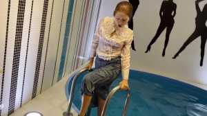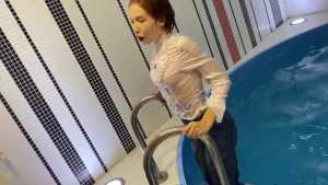 Wetlook in Public Pool! Very Sheer Turtleneck and No Bra!