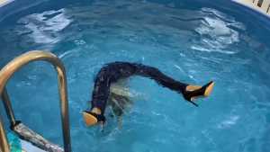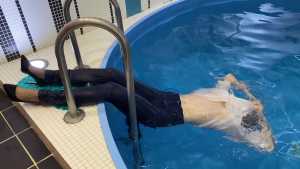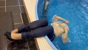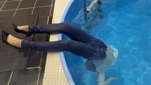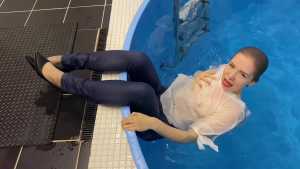 Wetlook, Dunking and Hair Washing! Sheer Top and Leather!