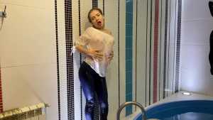 Wetlook and Washing Hair! Sheer Shirt and Jeans!