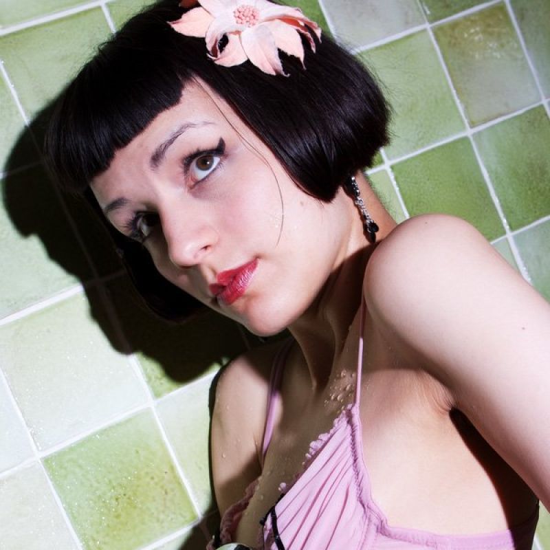 | | $7.00 | This pretty young woman reminds us by her look of the pin-ups of the 50s. Dressed in pink lingerie, a little retro, she wets her body, her legs, her breasts with pleasure.