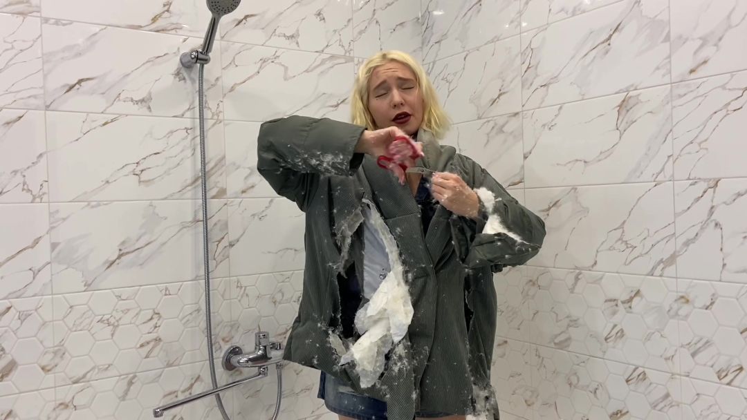 Wetlook with Diana and Ripping Outfits Completely! Naked!