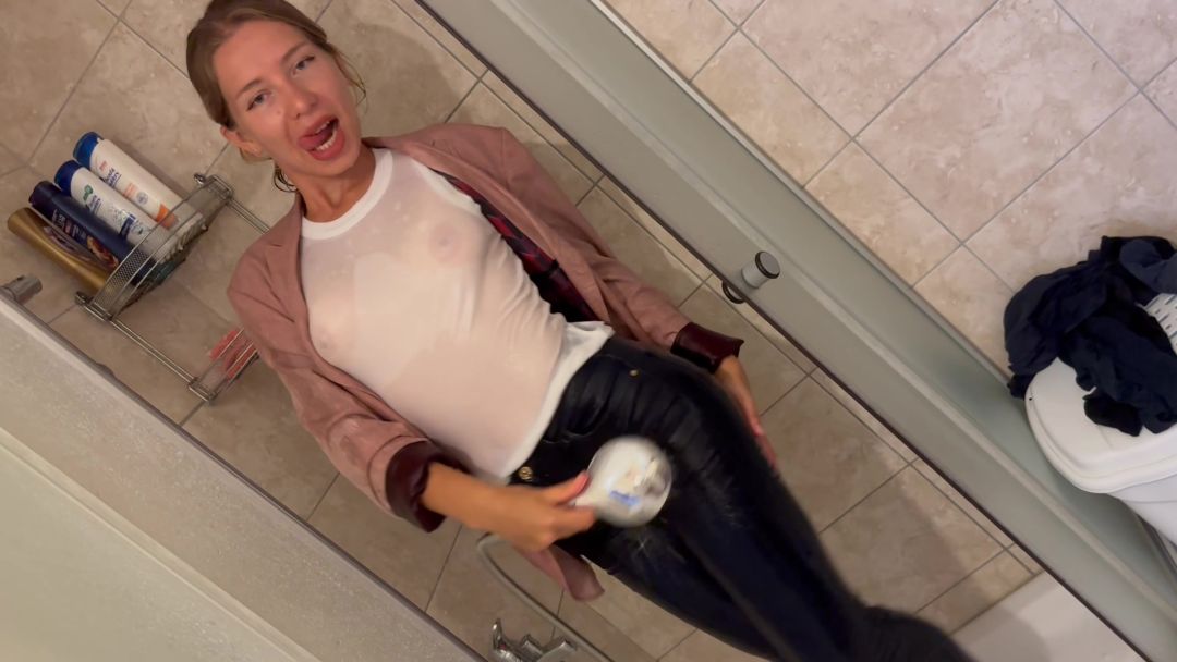 Dunk a Lot and Undress! Masturbation with Shower Head!