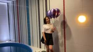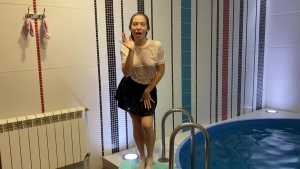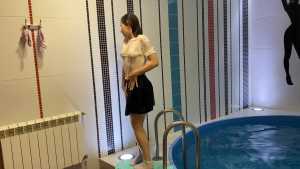 Sexy Maid Gets Wet in the Pool! Jump a Lot and Stripping!
