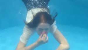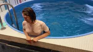 Wetlook and Handstands in the Pool! Sheer Top, Topless!