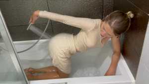 Wetlook and Wet Hair in the Shower! Transparent Top!
