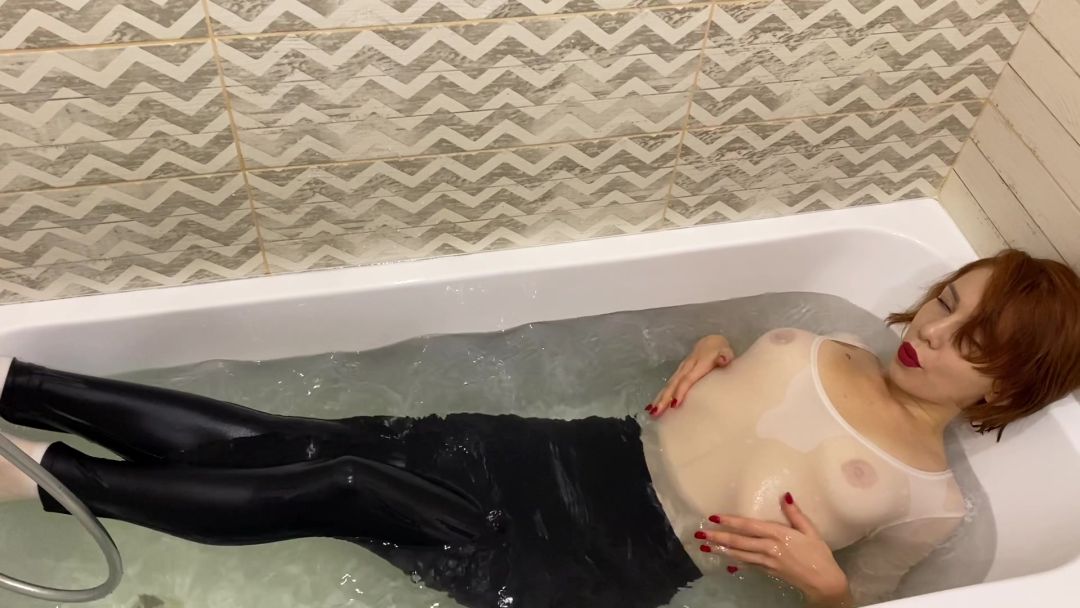 Wetlook, Dunking and Hair Washing! Sheer Top and Leather!