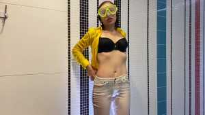 Wetlook and Washing Hair! Sheer Shirt and Jeans!