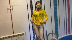 Wetlook in Sheer Dress and Washing Hair!