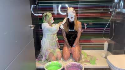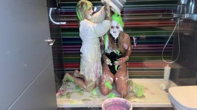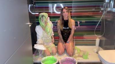 | In my living room, the red and black PVC dress gleamed, hugging my curves with a glossy sheen. Craving chaos, I grabbed two buckets brimming with green slime. With a grin, I poured the first over my head, the gooey cascade coating the dress, dripping... Starring: | ||||