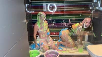 | Robyn continued to play in the mess and I quickly realised it was not the punishment I thought it was and she actually looked like she was having way too much fun. I decided to get in but had the intention of staying cleanish... until Robyn pied me r... Starring: | |||||