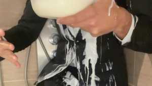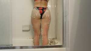 This is one of my hottest videos. I cover my suit in yogurt and get very horny. After that, I completely rip my suit to shreds. When I am almost fully naked, I wank and cum.