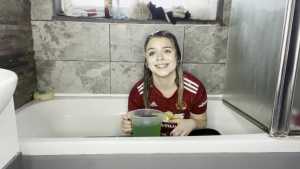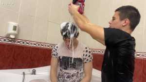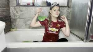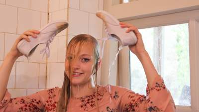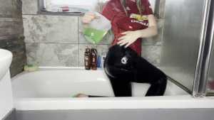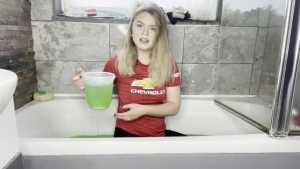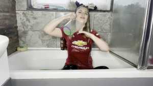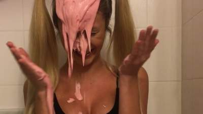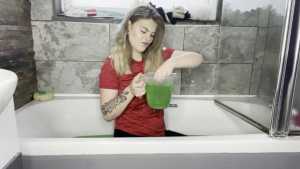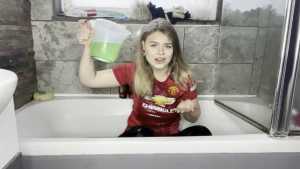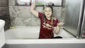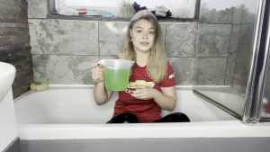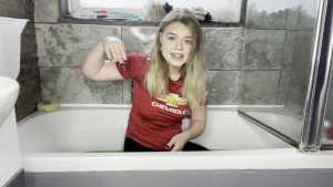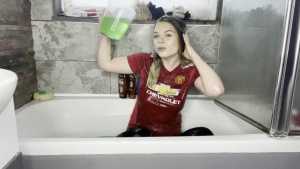 Leah is back wearing her Man United shirt ready for a very messy slime bath! She has a jug which she uses to scoop up the slime and pour all over her shirt, before moving on and pouring it all over her head, covering her long blonder hair in the sti... Starring: | ||||