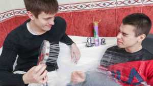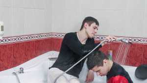 A hot bubbling jacuzzi was more than ever the way to relax at a meeting of two friends! Ruslan was very handsome in his white see-through trousers, white T-shirt, socks and white sneakers, he also wore a dark sweater which was very heavy when wet.... Starring: | |||||