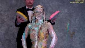 | All 3 angles! Natalia's the stunt double in a fake Disney movie, meaning she only does the humiliating parts! Amazing "angry" overacting in Natalia's messiest scene ever, as she takes 5 cakes, 15 pies and triggers slime in sexy lingerie and garters... Starring: | |||||