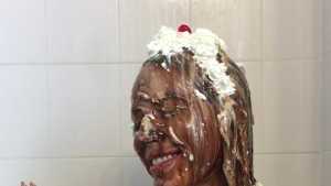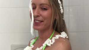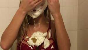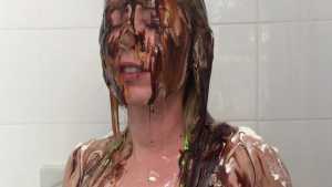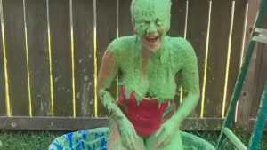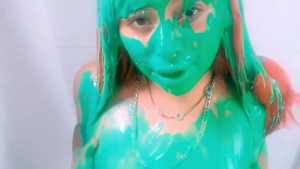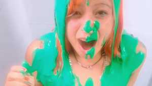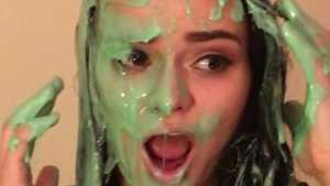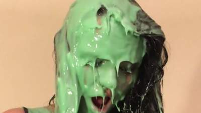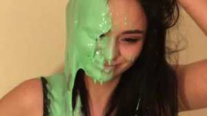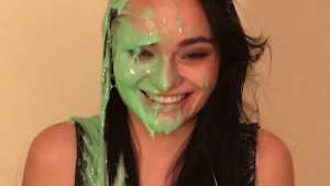 Natalie gets pied in the face and ass and slimed with green cake batter slime! Starring: | ||||