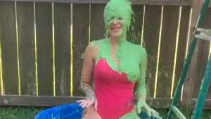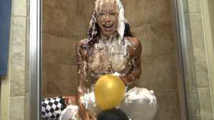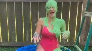 Sera gets a big load of green cake batter poured down the back of her sexy bathing suit bottoms, and is proceeded to be given a huge wedgie, so we get all that messy slime all up in her, and the extra slime comes pouring out down her legs! Starring: | ||||