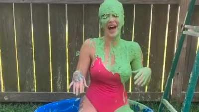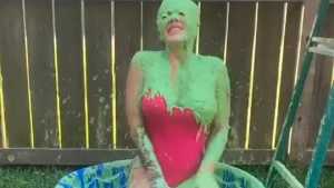 Sera in a sexy one-piece gets her first-ever green sliming poured over her head. Sera was one of the first people I shot with when I started back up, and was an amazing sport about getting slimed! For fans of the non-gross, this slime is just cake b... Starring: | ||||
