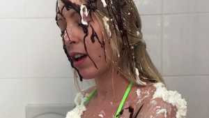 Beautiful fitness model Nicole gets turned into a sundae, complete with a whole lot of whipped cream, chocolate sauce, and caramel sauce, applied on her in alternating succession! For fans of dessert wam, you'll be sure to love this sweet treat! Starring: | ||||