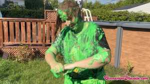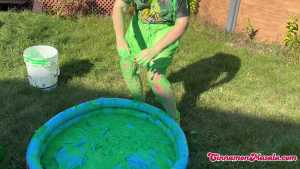 | Naked and in the bath, I have some lovely thick green gunge ready just for my curvy body. I pour it over my feet, and body, and bathe in the thickness of it before spreading my legs wide and play with myself until I cum. Starring: | ||||