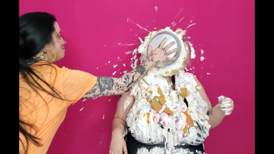 Dressed in my leather coverall/overall, and thefetishgirl in a black PVC dress, I get pied in the face as well as get my nose pinched before my face gets cleaned off with tissue and then blow my nose hard. Starring: | ||||