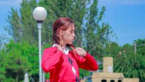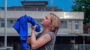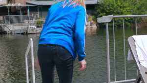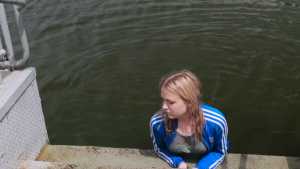 Nadia was wearing a blue zip-up sweat-shirt, blue jeans, a white T-shirt, a green bra, green socks and sneakers! She had a great shower and then went into the water to make her whole outfit wet! She got great wet jeans, her green bra shone through... Starring: | |||||