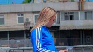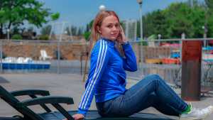Tanya was walking along the embankment in blue jeans, a thin T-shirt similar to a nightgown and a sweater of different colors, on her feet were socks and sneakers.