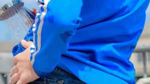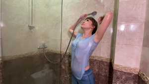 Nadya was wearing a great sweat-shirt olympic, blue jeans, a gray T-shirt, socks, sneakers and a bra! Nadia showed her dry outfit and gradually soaked it with water from the shower, then when her jeans were completely wet, she took off her sneakers... Starring: | |||||