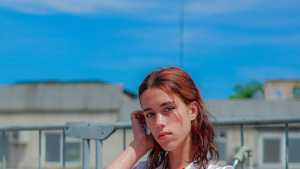 Anastasia had an incredibly stylish and wet look, she was dressed in a plush pink sweater, T-shirt, light jeans, socks, converse