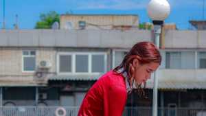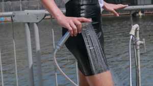 I was in a tight burgundy dress, beige tights and white converse, I took a beautiful shower with shower gel and elegantly got wet from all sides and wet my hair! I enjoyed dripping water drops and tight things, you will love it too!