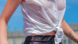Tanya posed for us in a dry state, then sat down on a beach lounger and began to rub herself with sunscreen, because the hot sun could harm her and accidentally splashed it on her pants... She was wearing tight blue jeans, a blue striped blouse, and... Starring: | |||||
