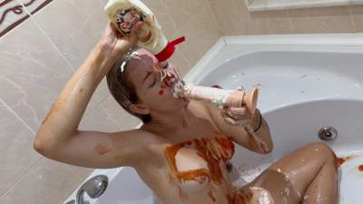 Covered in shaving foam! Pink slime on my head! Then a very hot masturbation with a dildo and moans! Starring: | ||||