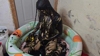 I finally try out black Mehron! (aka my own homemade oil paint). I'm naked in pigtails and enjoy layering this pitch black shiny substance all over my body from my cute feet and toes, up my long legs, torso, tits and ass. I save my face for last a... Starring: | |||||