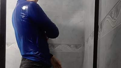 Steve dresses in a blue long-sleeved t-shirt and pants and decides to take a long shower. His wet clothes cling to his body and become shiny. After a few minutes, he decides to shampoo his hair and is left covered in suds from head to toe. The amount... Starring:  | ||||