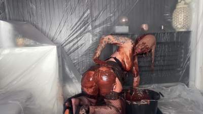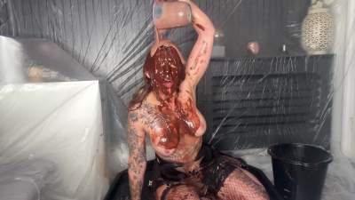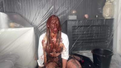 Our messy sub is wearing the cone of shame while wearing her shame collar. Red gunge is poured directly in the cone causing our sub to panic in distress before ripping it off causing and avalanche of red oozing down her front. The remaining red gunge... Starring: | ||||