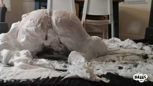 | Sitting naked, I use four plates and fill them with cream. I then take one pie to the face while my legs are spread very wide, and then let my feet squish into the next pies before using the last one for my face and body. I then smear the cream every... Starring: | ||||