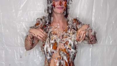 Girl takes a shower in a bathing suit after slime with pies. Her whole body is covered with feathers and dirt, as she received mucus and dirt you can find in our store. Starring: | ||||