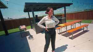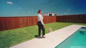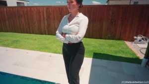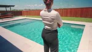Iris is by the pool wearing black business pants, a white blouse with a bra and heels. She first walks around the pool where we get to see some nice dry shots from her front and her back. She then takes her heels off and goes in the hot tub just with... Starring: | |||||