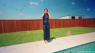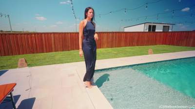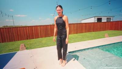 Jenny is outside by the pool wearing a sexy blue satin pant set and heels. She first shows off her outfit while dry and then she slowly steps in the pool, gradually getting her outfit wet more and more. For this part she is making sure her hair stays... Starring: | |||||