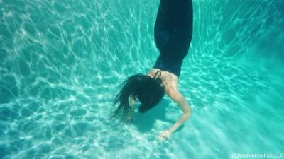 Reina is by the pool wearing a sexy maxi dress with heels. She first shows off her outfit while dry. First she dips her feet in by the deep and and splashes some water on her dress. The water makes the dress change colors. She keeps playing with the... Starring: | |||||